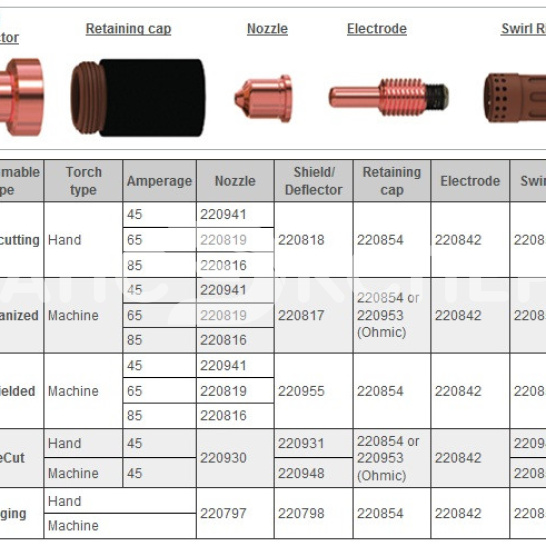 Применяется в металлообработке, авторемонте и промышленном производстве. Аналоги: оригинальные сопла Hypertherm, но модель 220990 предлагает лучшее соотношение цены и ресурса. Преимущества: точность реза, увеличенный срок службы, доступность (производство КНР, наличие на складе). Артикул: 220990.