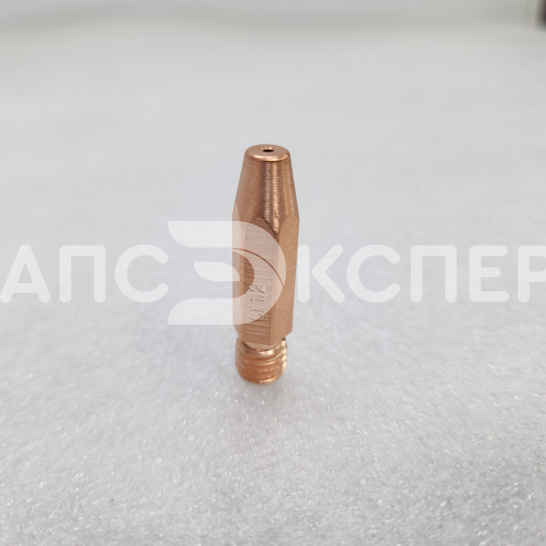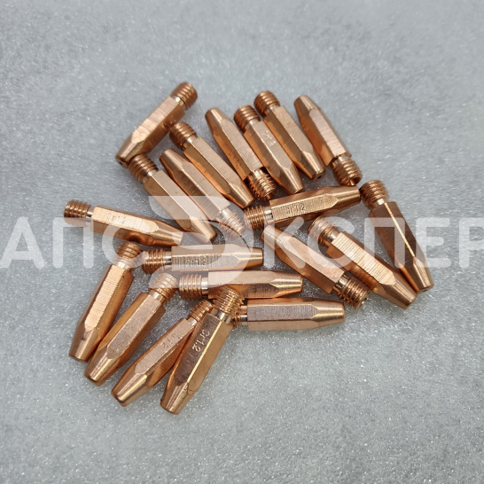 Усиленный контактный наконечник из сплава меди, хрома и циркония (CuCrZr) для полуавтоматической сварки. Предназначен для работы со сплошной и порошковой проволокой диаметром 1.0–1.2 мм. Длина 35 мм и резьба М8×1.0 обеспечивают совместимость с горелками стандарта RF-45 и аналогами.