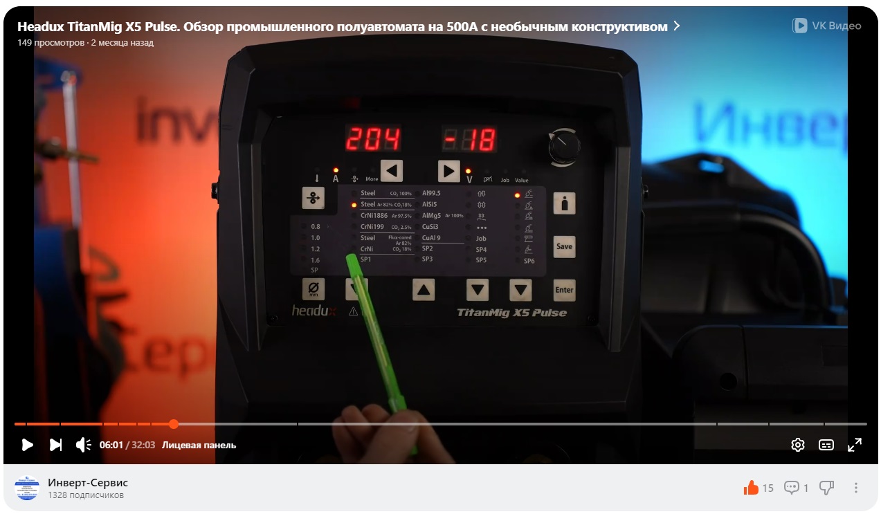 Видеоролик на популярном канале Инверт-Сервис о сварочном аппарате TitanMig X5 производства HEADUX ELECTRIC